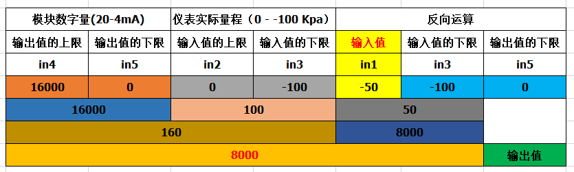 真空壓力傳感器 是4-20mA的,   4mA對應是   -100KPa           20mA對應是   0KPa        ,三菱FX3U-4AD模擬量輸入,用模式3如圖 ,怎樣轉成我實際的真空壓力值顯示在人機。怎樣計算的。