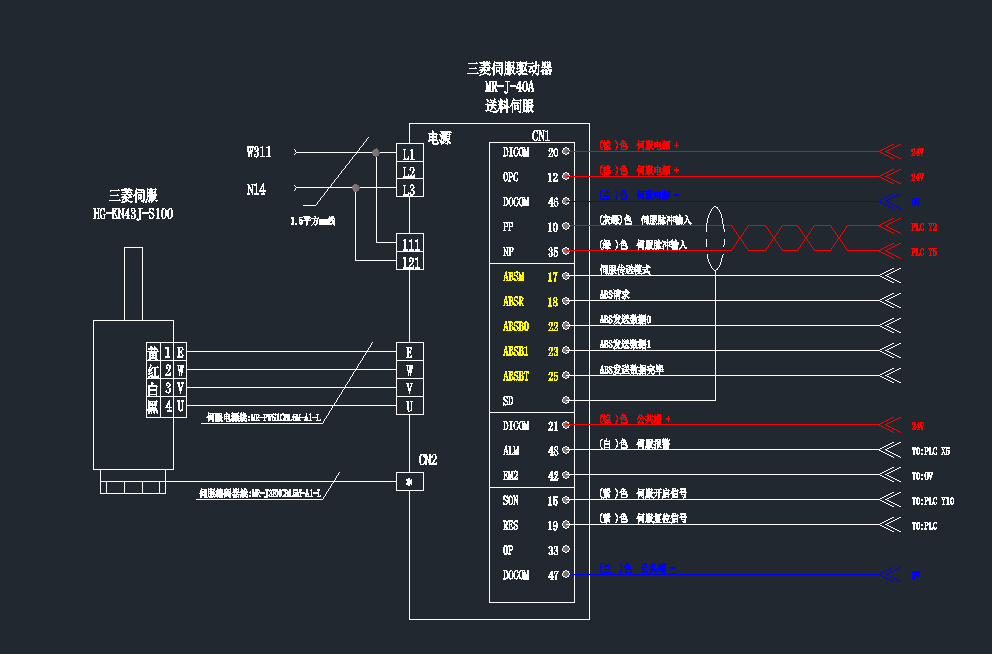 求三菱MR-J4-200A與三菱FXplc的接線圖