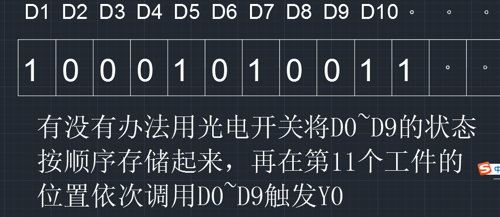 3,檢測良品工位:當(dāng)收到皮帶運行完成信號,檢測良品工位進(jìn)行檢測,如果是良品信號就執(zhí)行SFTLP M8000 M0 K20 K1;如果是不良品就執(zhí)行SFTLP M8001 M0 K20 K1;此指令是三菱FX系列PLC的左移指令,M8000是常ON,M8001是常OFF,SFTLP M8000 M0 K20 K1每執(zhí)行一次就把M8000,M0,M1,M2.....M18,M19依次向后移一位,這條指令實現(xiàn)的功能順序是1),把M19之前的狀態(tài)復(fù)位,2),把M18的狀態(tài)給M19,3),把M17的狀態(tài)給M18......,依次類推,就是按M8000,M0,M1,M2.....M18,M19的順序依次把自己的信息傳給后面,像接力棒的形式一樣往后面?zhèn)鬟f,皮帶每移動一次就把良品信息向后傳遞一次;SFTLP M8001 M0 K20 K1指令是向后傳遞不良品信息,當(dāng)檢測結(jié)果為不良品,就把M8001的OFF狀態(tài)給M0,皮帶每移動一次就把不良品信息向后傳遞一次,M19就代表著第20個工位產(chǎn)品的良品/不良品的信息,M19=OFF,代表過來的產(chǎn)品是不良品;M19=1,代表過來的是良品;