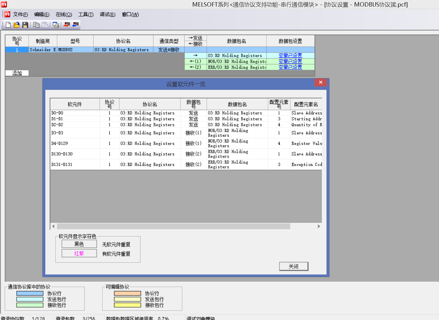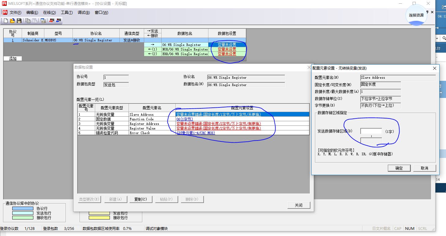 請問各位大神:三菱Q系列QJ71C24N用485口走MODBUS-RTU通訊參數我設置的對嗎?從站是三菱變頻器E700 ,變頻器的通訊參數設置的和C24的參數一樣的,站號是1號站,怎么MODBUS-RTU協議放到協議對應的寄存器里呢?協議寄存器如圖!新人學習,請大神指教