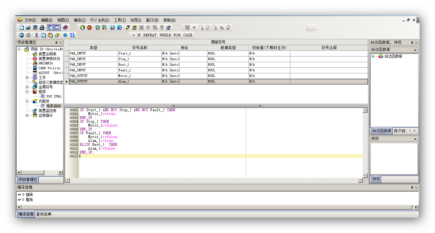 把西門子SCL寫的電機運行小程序移植到臺達PLC A系列上,目前A系統是最新款PLC 功能強大、本機主機才1500左右,性價比好、本機帶6軸伺服控制、CANOPEN總線運用好。