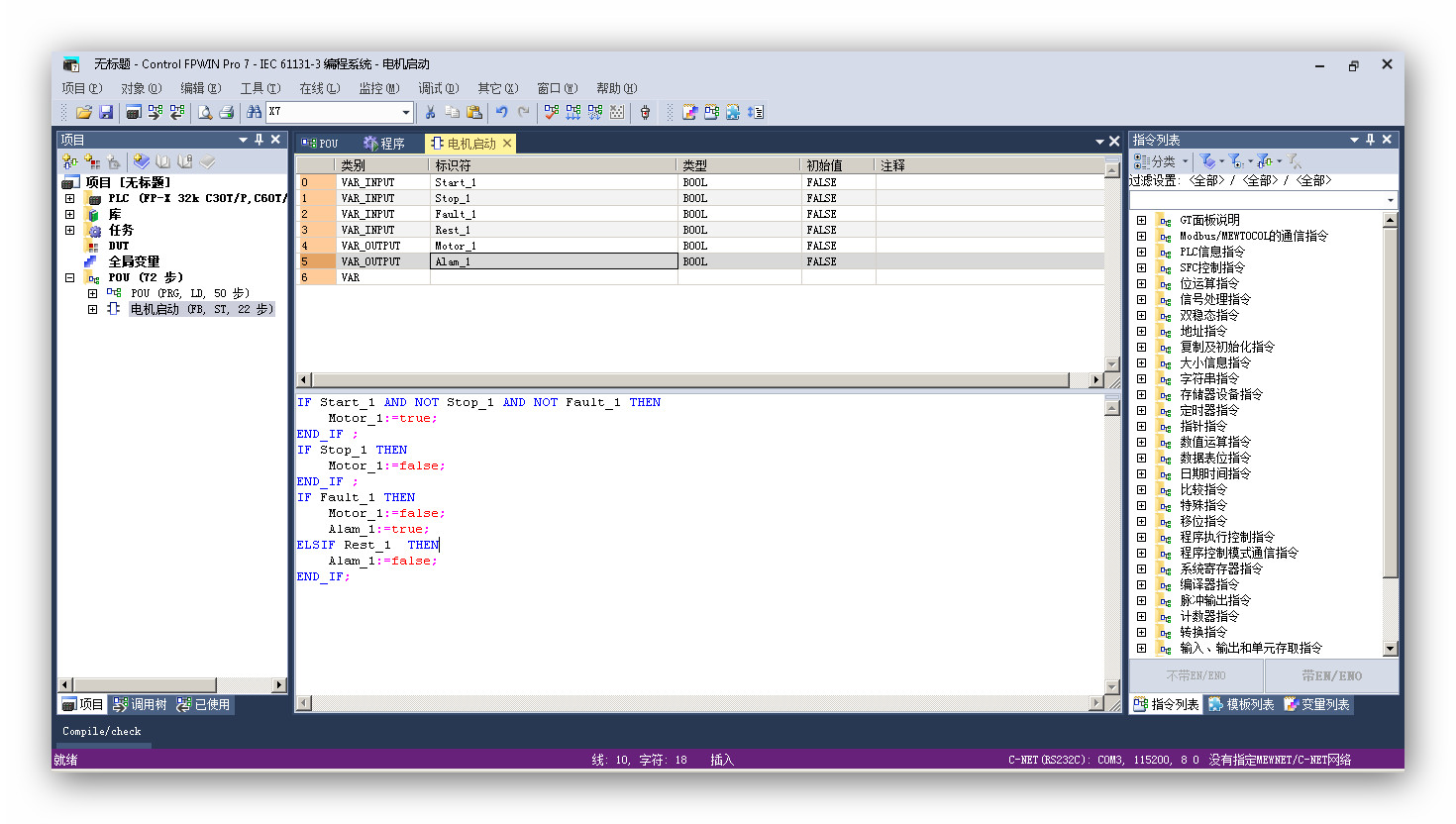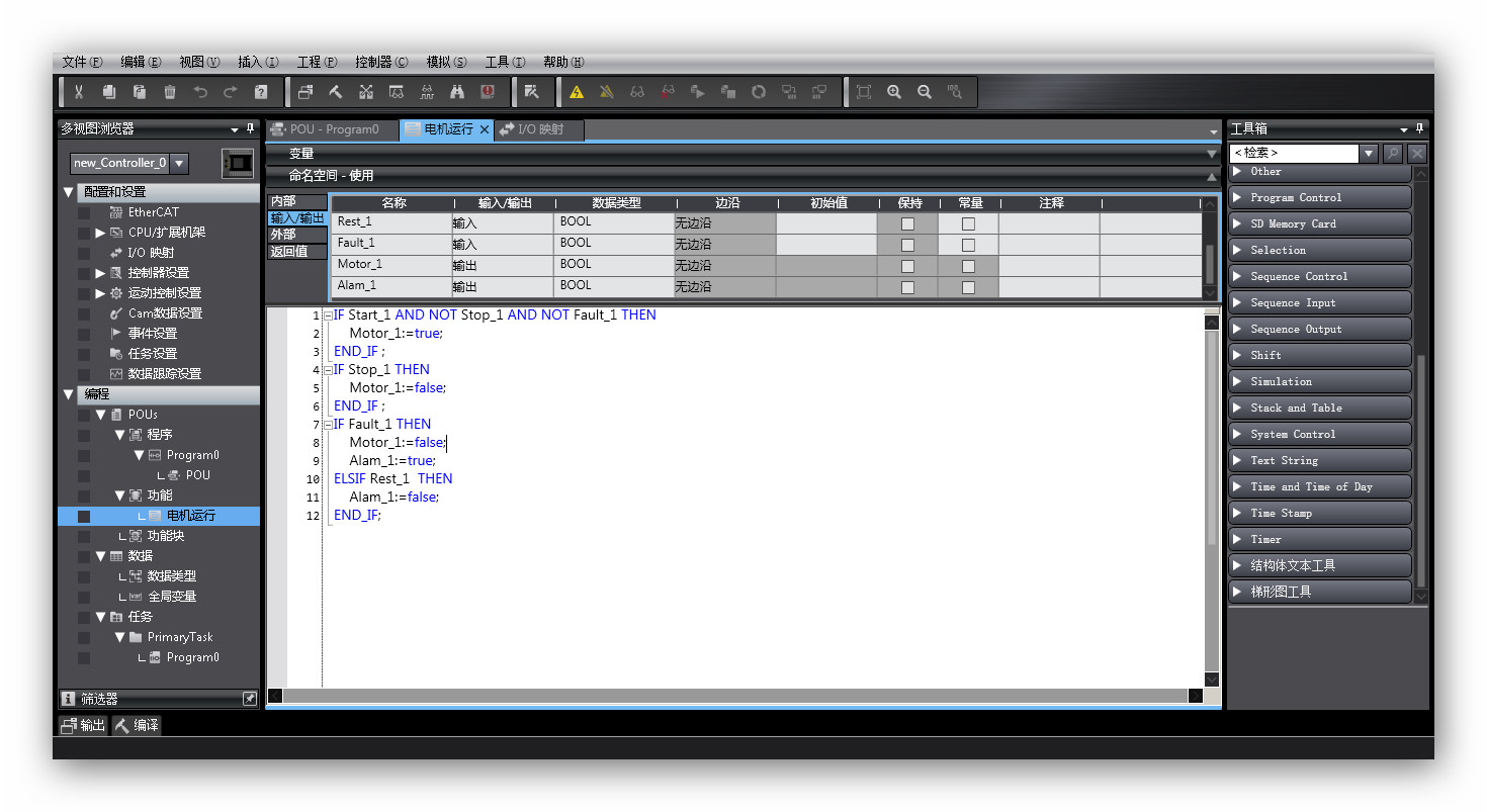 IF Start_1 AND NOT Stop_1 AND NOT Fault_1 THEN  //電機啟動條件