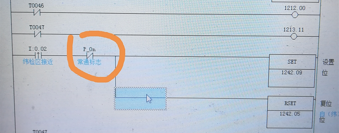 請問圖中這段程序,用到了一個p_on的常通位,但是是用了一個常閉指令,那這段程序有什么作用,plc通電常通位一直有電,那不就意味著這個常閉開關一直斷開,后面的程序如何才能執行呢?后面的這個置位點1242.09,后面程序是有用到的。