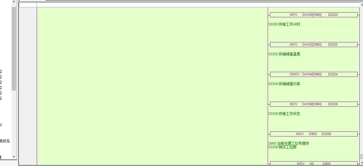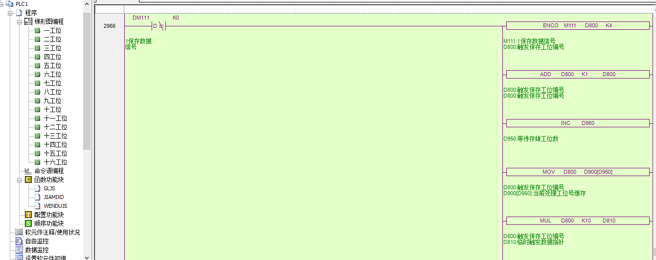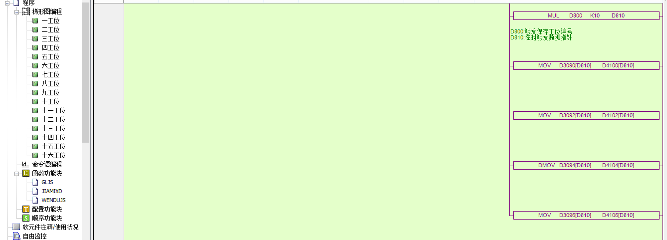 M111-M116分別是16個工位的測試完成信號  D3100-3106是1工位需要上次的數(shù)據(jù)   D3110-D3116是2工位需要上次的數(shù)據(jù)  依次類推