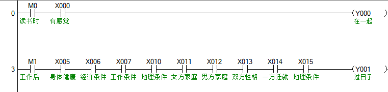 樓主,這五年有一個最重大的變化。可能你忽視了。 讀書的時候,喜歡誰,就去表白。都不用追 ,直接就表白,三個總能成一個。 雙方決定只需要一個條件,喜歡,或者不喜歡。 現在不是了。。。現在要的條件多了。。。 哎,我還是單獨發一個貼子吧。。 送你一個梯形圖 ![]() [ 此帖被Q02UCPU在2019-01-02 12:38重新編輯 ] |