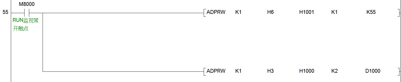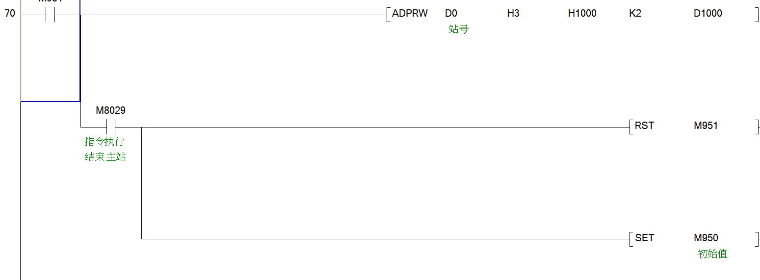 三菱FX3U加RS485ADP-MB,讀取一路臺達溫控表溫度、寫入設定值的程序樣例