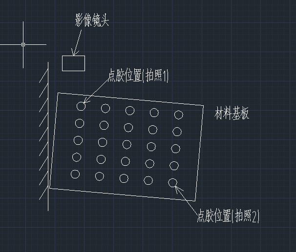 一個矩形材料模板,上面有一個需要點膠的標準矩形位置,當材料基板位置放偏的時候是怎么通過拍照如圖下的兩個位置,來修正后面的點膠位置還是矩形了,求思路?