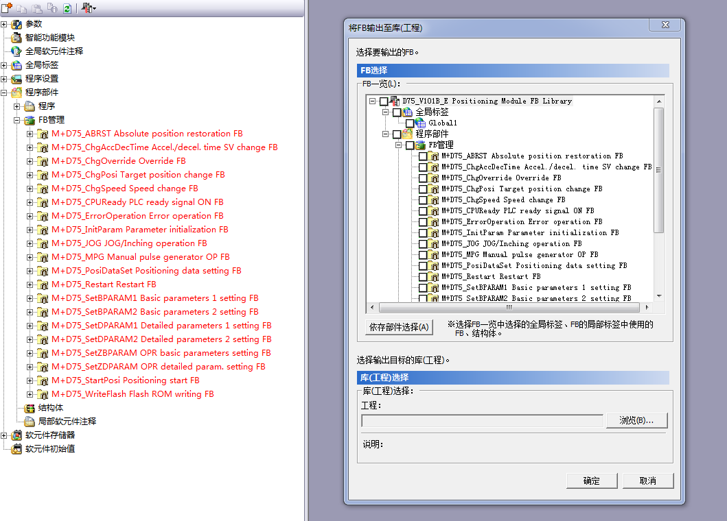 打開三菱庫程序后,選擇將FB輸出至你要工程里