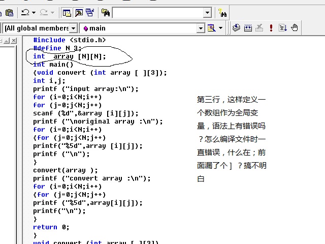 數據array[n][m]沒有聲明大小,要用常數,不能用變量array[2][3]