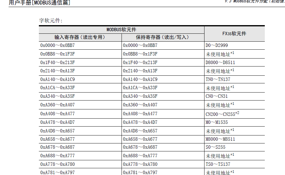 參照FX3U MODBUS通訊手冊,這是FXPLC 對應的MODBUS地址