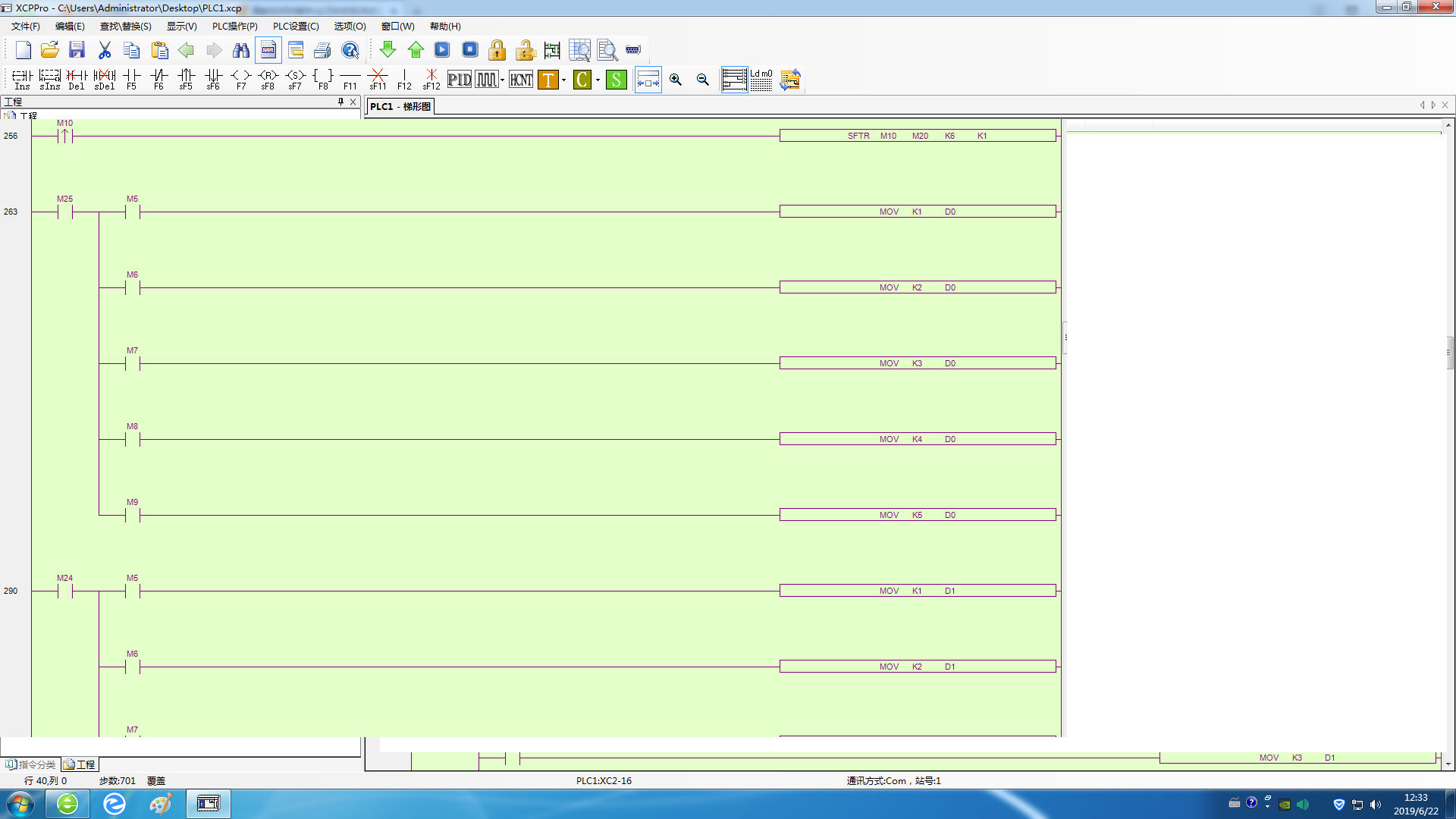 每次發出下料請求時,按流水式切換M25---M21(導通一位就上一位復位,只導一個觸點)M25導通時只輸入D0的值,M24導通時只輸入D1的值。。。。。。。。。