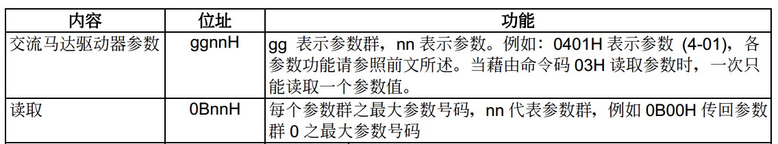 啟動,停止,加減速。正反轉,這些都行。就是要在屏上改參數群中的其它參數的地址不知怎樣的格式。按照圖2第一行講的也沒有成功。