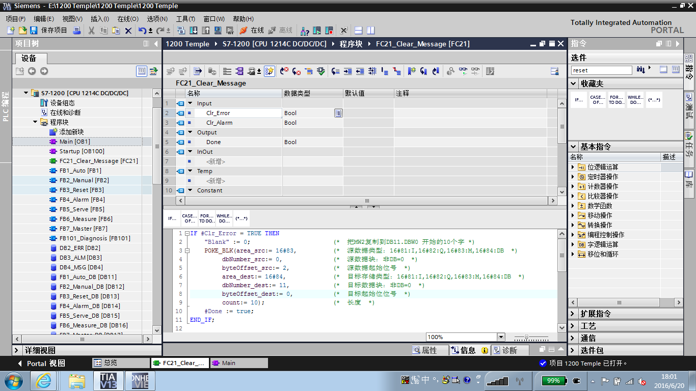 西門子S7-1200PLC 需要把MD0---MD100 全部清零,用什么方法比較好?