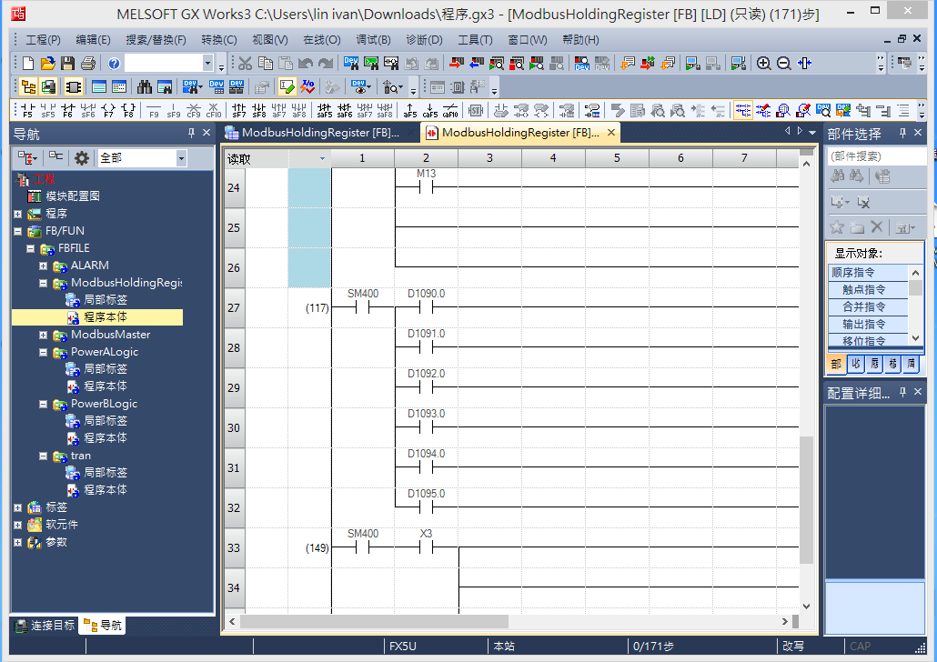 各位大師FX5U程序已經下載下來(貼附件上了),打開FB和掃描程序都上鎖了,怎么解開?望告知 ,謝謝!
