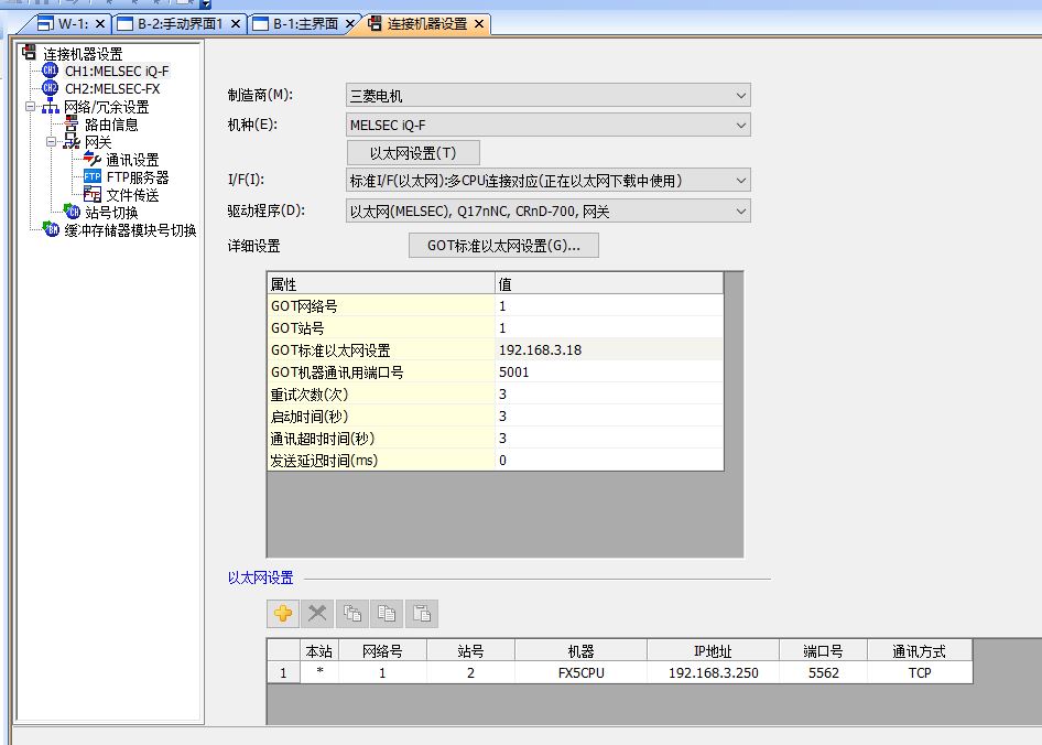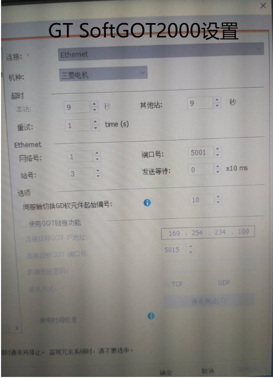 十分感謝你技術,建立連接我將PLC的IP地址、GT Works3編寫的觸摸屏程序連接地址設置成一樣,就OK了