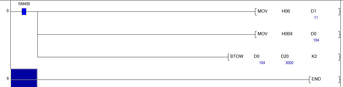 如果將HB8存入D0,將H0B存入D1的話,你可以使用BTOW指令。