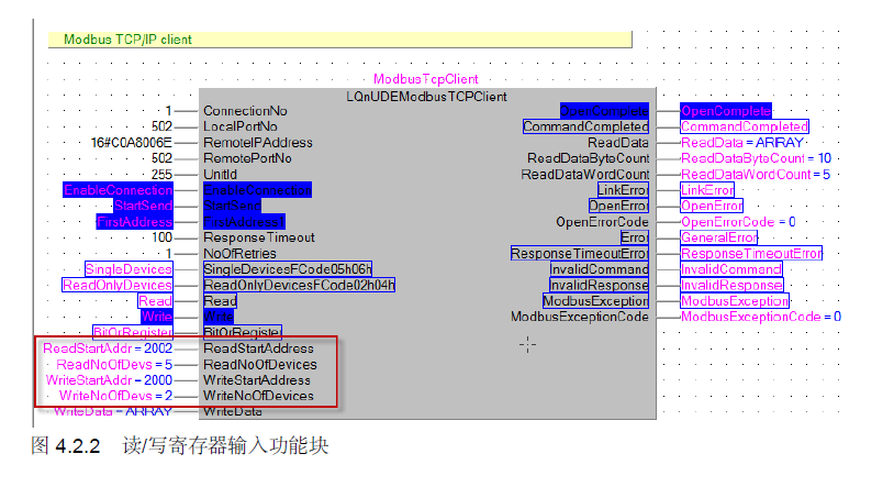 也可以通過模塊串口用ModbusRTU協議讀寫網口的PLC:
