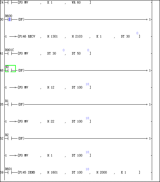 原來就沒有上升沿 接收不到我又加的  讀取和發送我是分開做的 r600 接通斷開后r601才動作