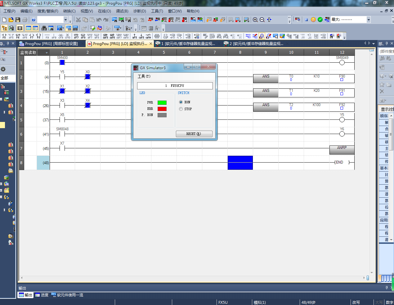 各位大神好:我的GX  Works3 1.050C 仿真用不了,GX Simulator3的小框里 ERR燈閃是怎么回事?
