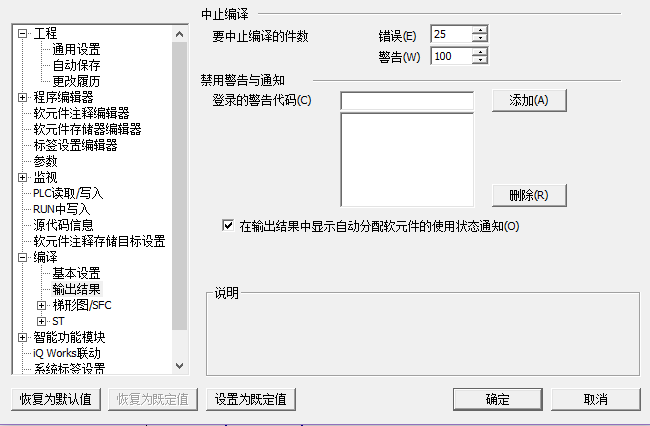 GX Works3沒有這個(gè)設(shè)置。每次編譯都一大堆雙線圈警告。