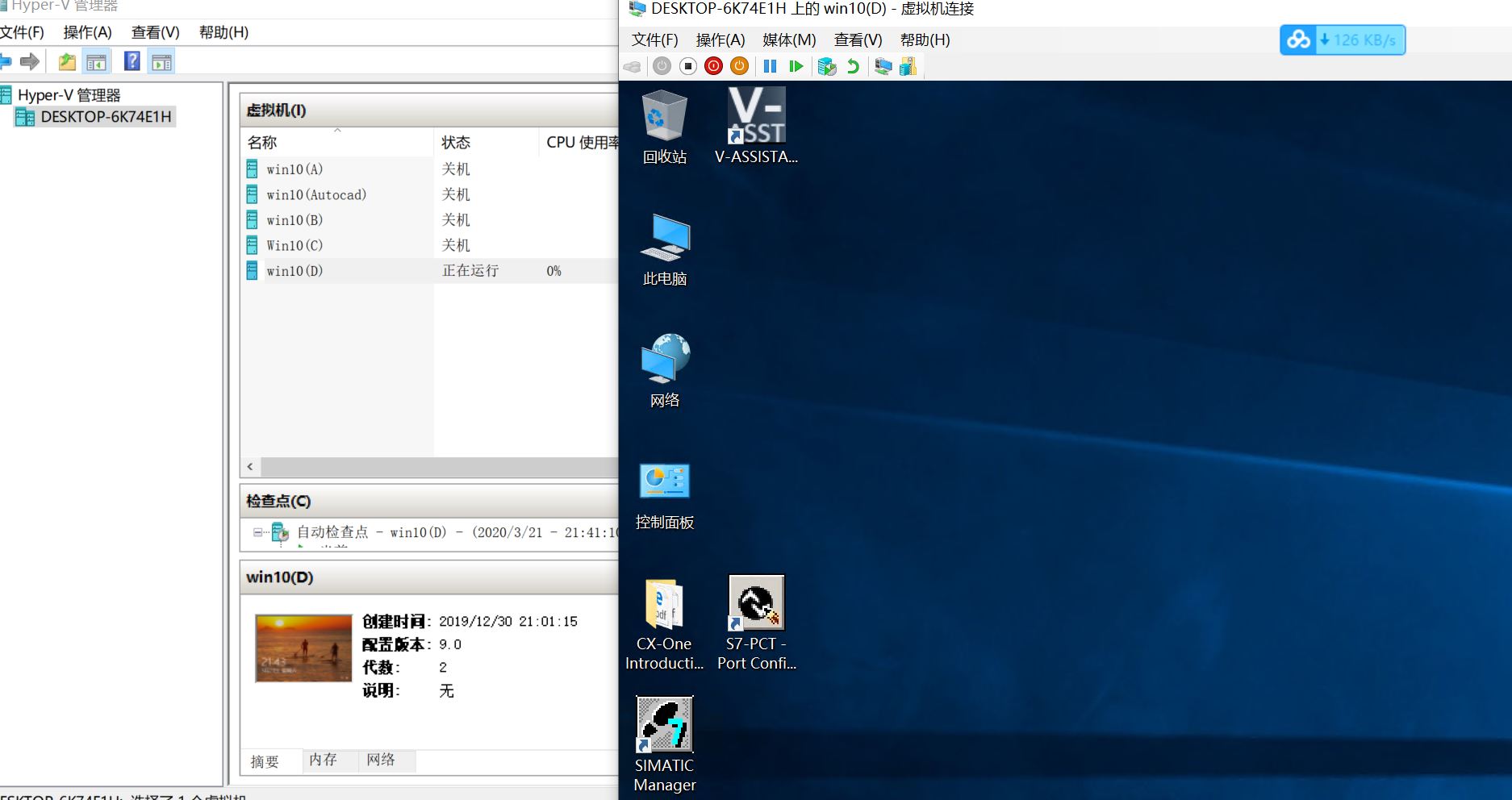 工作需要,所配筆記本需要安裝各種工控軟件,相信工控老鳥(niǎo)都已嘗試過(guò),裝的多一怕安裝好的軟件沖突,二怕個(gè)別軟件出錯(cuò)需要系統(tǒng)重裝,三怕根本不兼容無(wú)法同時(shí)安裝。經(jīng)過(guò)1年實(shí)際使用,如果各位需要把軟件安裝在WIN10系統(tǒng)下的,完全可以用Hyper虛擬機(jī),我的電腦配置還行,所以我裝了5各虛擬機(jī),分別用于西門(mén)子博圖V14SP1、三菱(GX-WORKS2、GX-WORKS3、GX-DEVELOPER),歐姆龍CX-ONE,AUTOCAD,SOLIDWORKS等,桌面安裝一些相對(duì)比較小,特別是對(duì)安裝卸載不挑剔的工控軟件。虛擬機(jī)可以備份移植,再也不用擔(dān)心系統(tǒng)重裝的煩惱