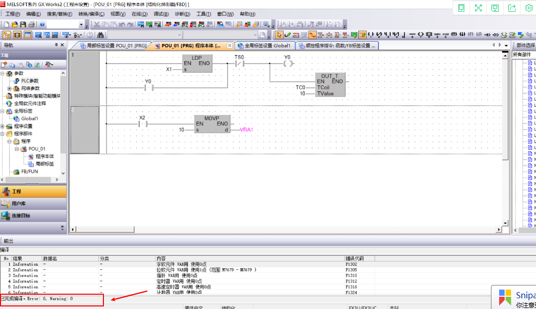 我想學(xué)習(xí)一下三菱的結(jié)構(gòu)化編程,看了官網(wǎng)的手冊寫了兩行,然后F4編譯的時候就出現(xiàn)了Infomation提示,沒有錯誤也沒有警告。一堆的提示信息不知道要怎么消除,程序模擬正常。