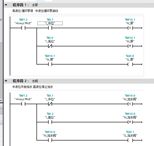 想做一個水罐的中液位開始加水 高液位停止加水     在每個液位需要考慮到加水電磁閥反復動作的問題
