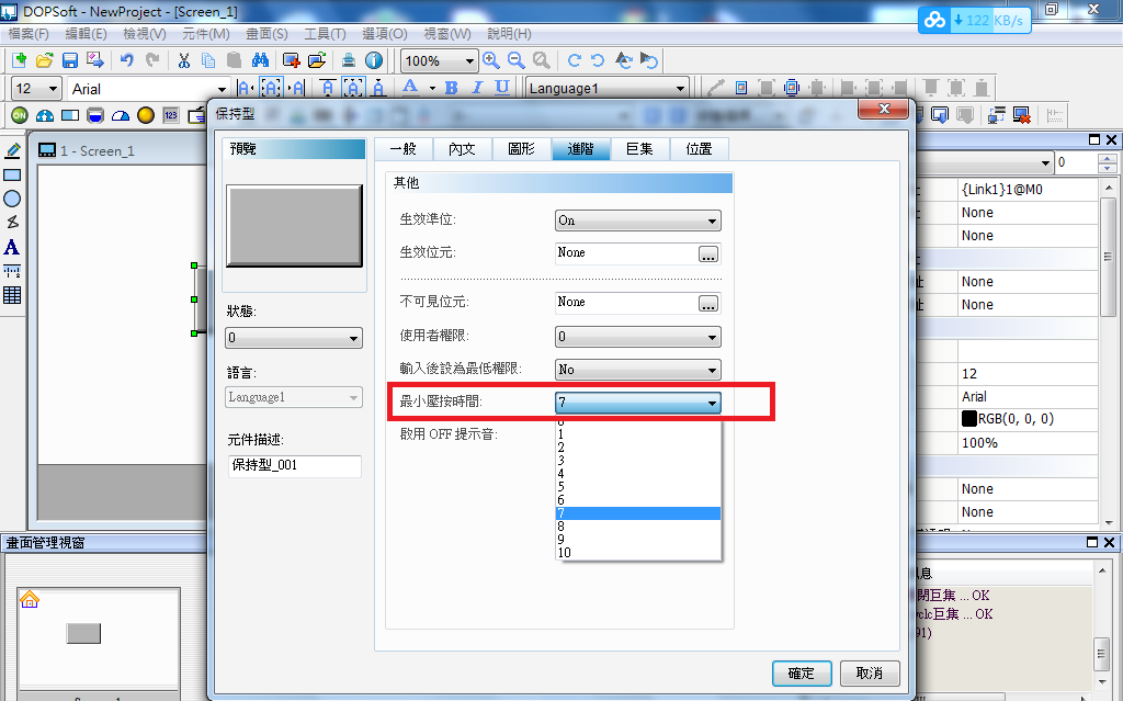臺達B系列觸摸屏的按鈕如何實現延時觸發?