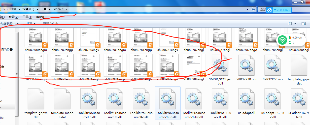第2步:打開GX-Works2軟件安裝路徑如C:\Program Files\MELSOFT\GPPW2,在此文件夾中有(sh080779engq.pdf等7個PDF文件即