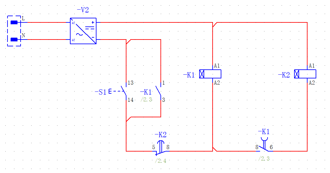 引用引用第2樓哇咔咔于2020-07-07 08:18發(fā)表的 :按鈕按下,自鎖一下為繼電器1上電,繼電器1 的常開(kāi)觸點(diǎn)為繼電器2供電,繼電器2的常閉觸點(diǎn)串在自鎖中