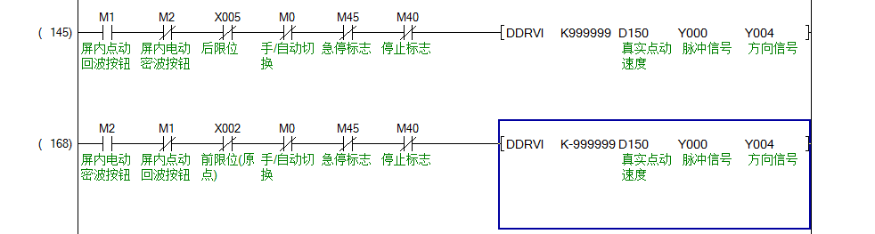 我用相對定位指令回原點 然后用一個接近開關 清除D8340里的數據  例如DMOV K0 D8340.然后手動用M1接通相對定位指令移動到一個位置,然后在觸摸屏上按一個確認件,記錄當前脈沖,然后先回原點之后,切換成自動用M15接通絕對定位指令,走這個脈沖數,然后走到與手動記錄相同位置的時候 我監控D8340發現當前脈沖值并沒有達到記錄的脈沖值差了有10倍左右。但是如果我把手動的頻率和自動的頻率設置成一樣的,那么手動記錄位置之后再給自動走這個脈沖量就是準的。這是為什么? [upload=1]