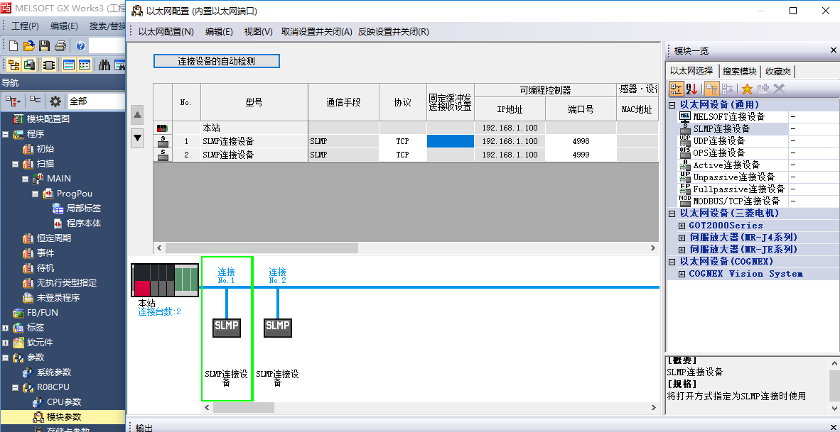 R08CPU的設置如下,兩臺PLC除了IP地址不一樣外,其它都一樣: