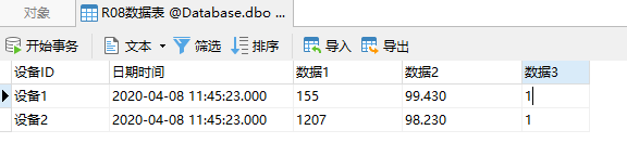 通過‘參數’->‘參數寫入到網關’下載數據配置到網關后重啟網關,網關即進入工作狀態,按照設定采集PLC的數據后更新數據庫。可以打開數據表查看數據更新狀況,如下圖:
