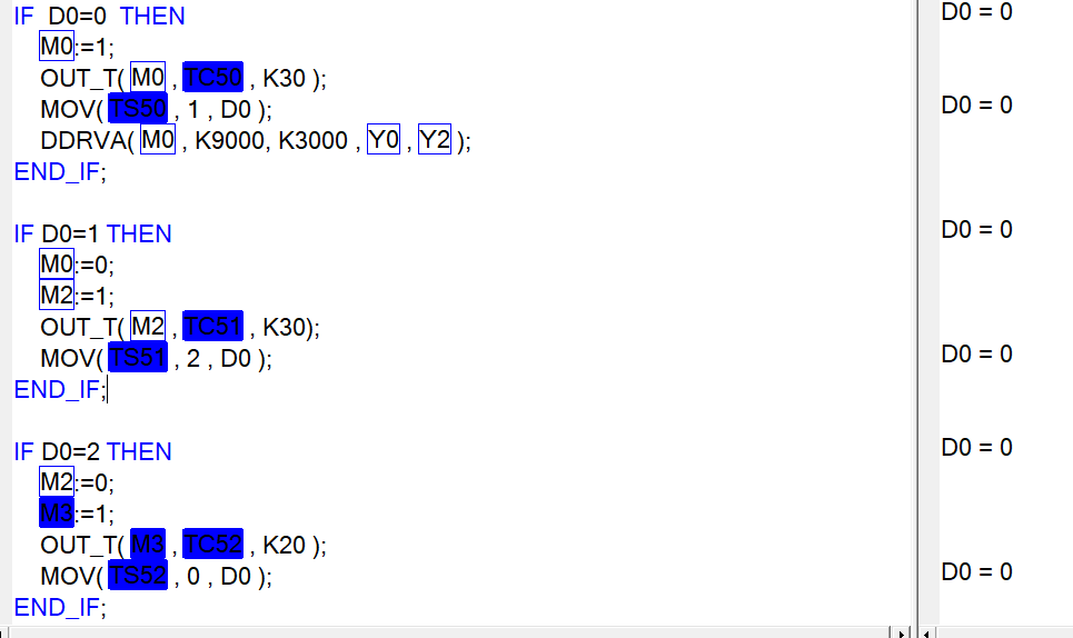 if 是半掃描的,條件不成立時不會掃描。可以吧OUT_T移到IF語句外面,使能條件改為OUT_T((M0 AND (D0=0)),TC50,K30)