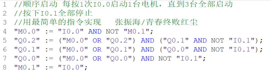 //順序啟動 每按1次I0.0啟動1臺電機,直到3臺全部啟動