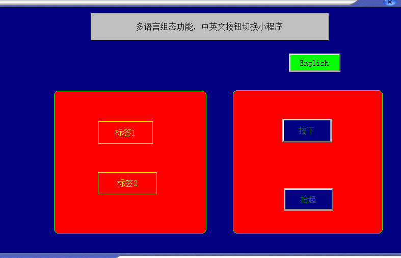 MCGS TPC 組態屏,想在同一界面放置一個 中英文切換按鈕,在中文界面時顯示為【ENGLISH】,在英文界面時【中文】且必須實現相互對應切換。