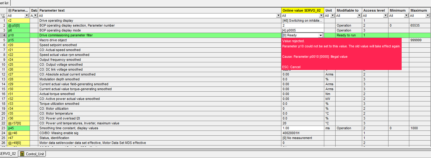 P10不讓改為0,是什么原因?如果想用軟件試車,是不是P10得是0,但是怎么不讓設置