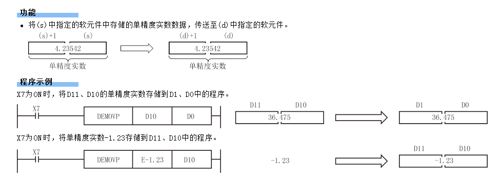 將(s)中指定的軟元件中存儲的單精度實數數據,傳送至(d)中指定的軟元件。