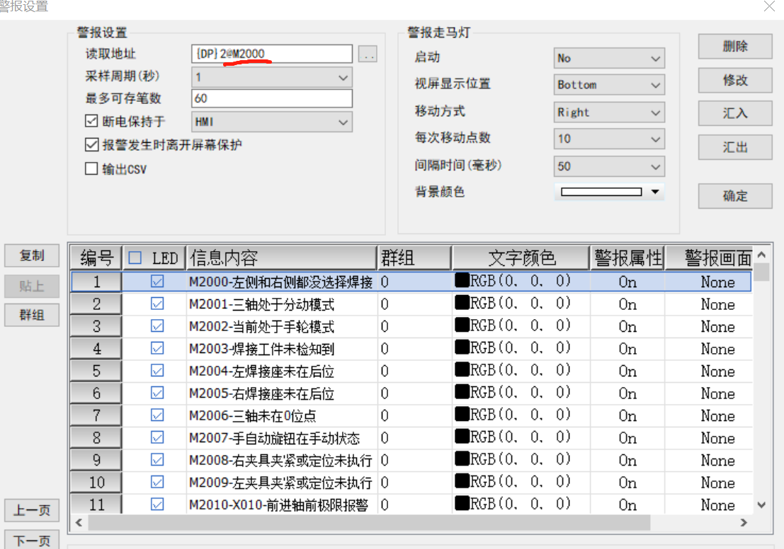 我在報警設置里設M2000開始的做為報警,從M2000到M2058為止有組態(tài)報警信息,M2058之后沒有組態(tài)報警信息,并且M3000以后的寄存器程序里有另用。現(xiàn)在發(fā)現(xiàn)M3000為1時報警畫面里也會出現(xiàn)報警信息,只不過信息內容為空白,這是怎么回事?看了一下報警設置,最大編號是到2048條,難道我從M2000開始,到M4047程序里都不能另外再用嗎。