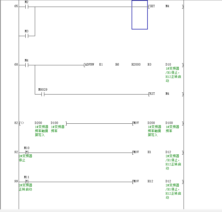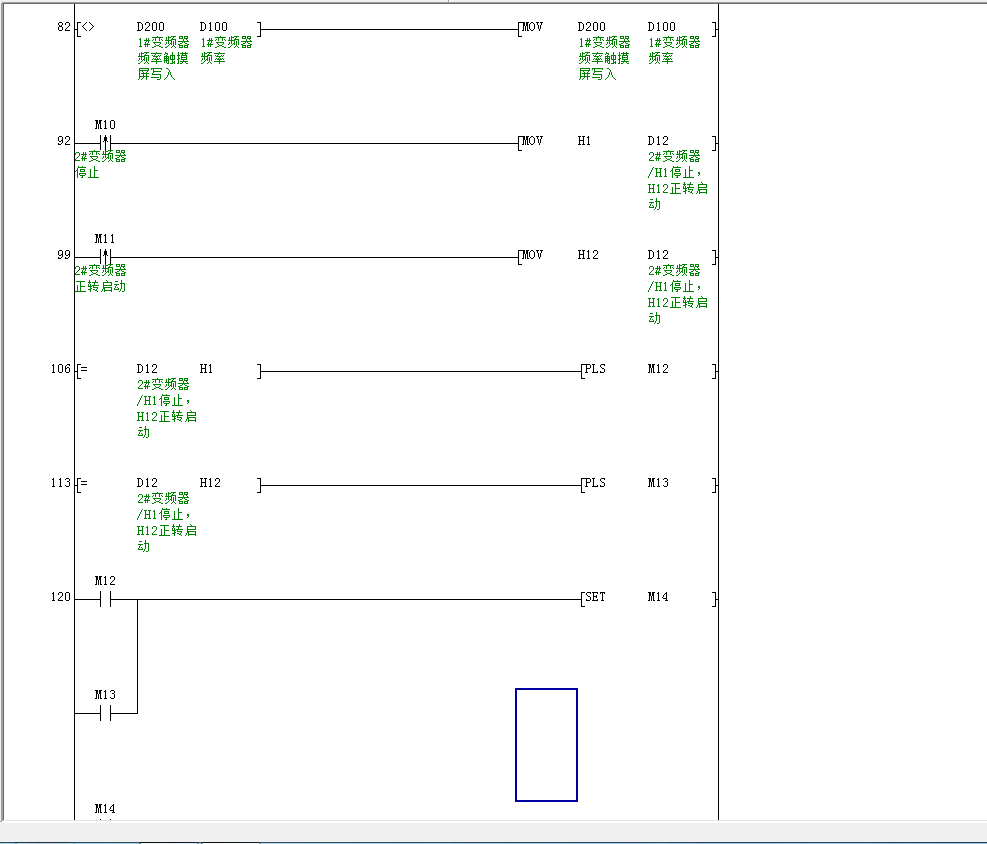 能麻煩您寫段程序和注釋嗎?控制啟動、停止、改變頻率的程序。