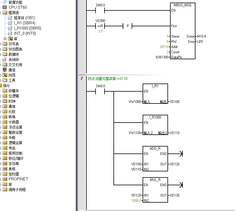 各位師傅,今天遇到一個問題,西門子200Smart ,和 渦街流量計 通訊讀累計總流量,分段讀取,一個表讀兩次,小數點之前和之后,一共兩塊表,