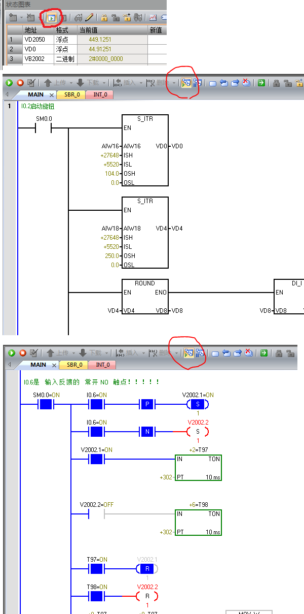 今天監控程序,SM0.0居然不通,而且一個B2002的BIT點報警,監視狀態依然為0,看圖,