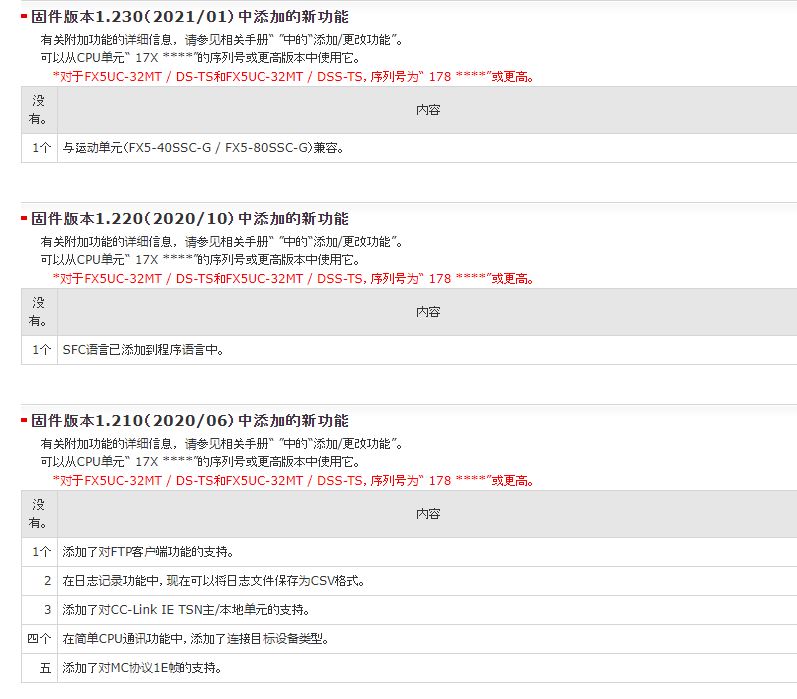 日本官網寫的是支持運動控制單元:FX5-40SSC-G/FX5-80SSC-G,其他的沒寫