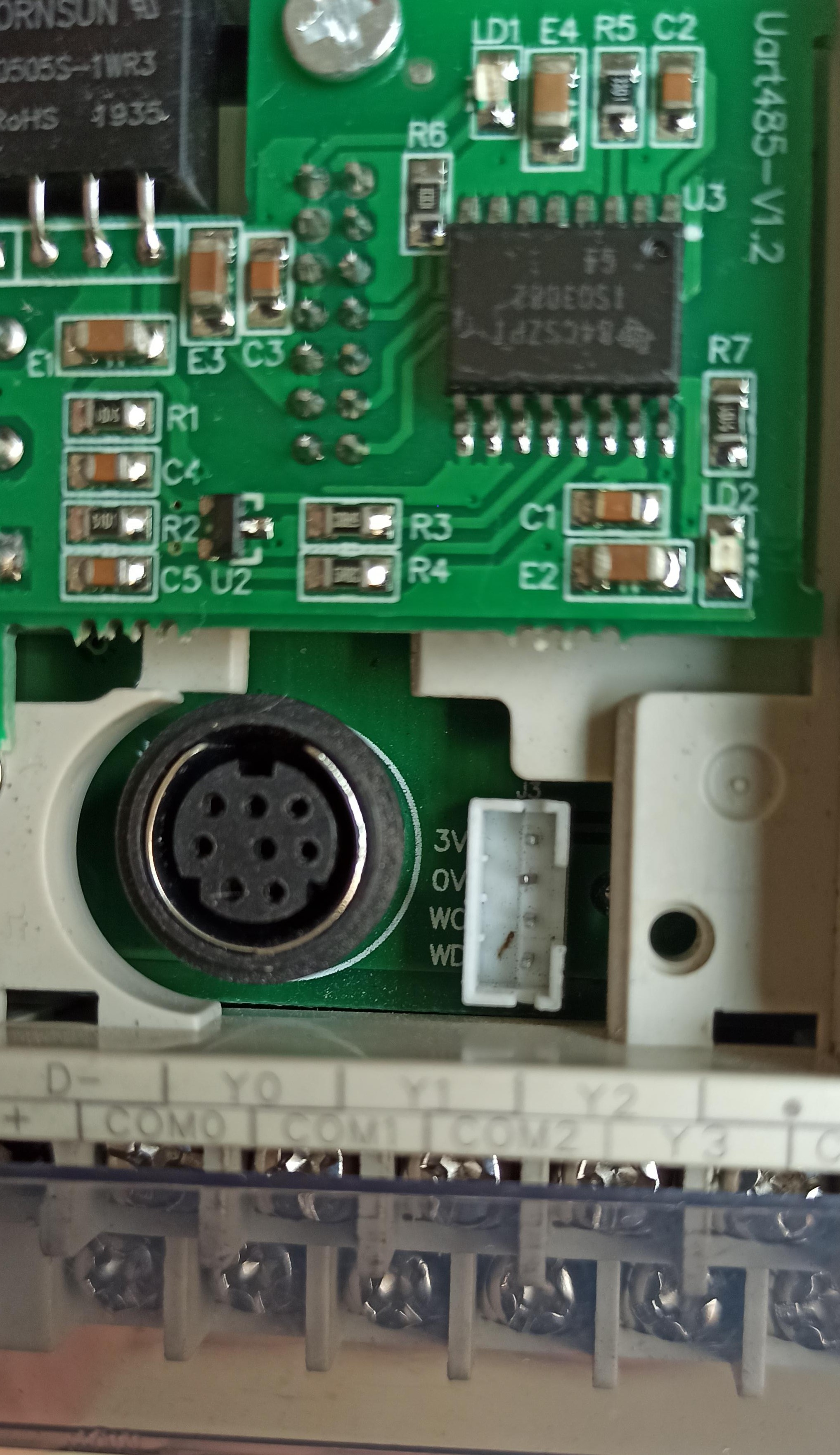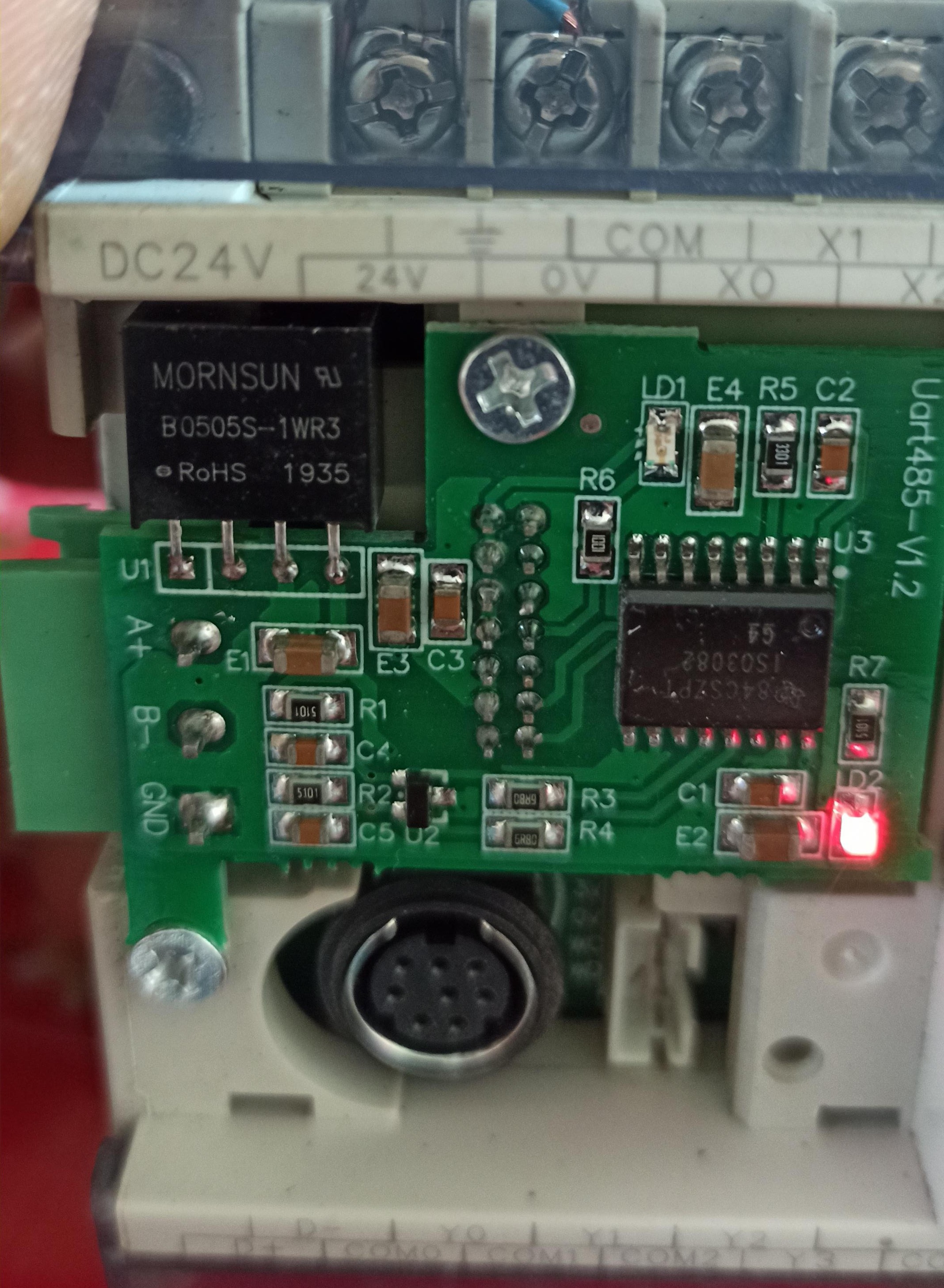 看樣子是防三菱的PLC,不過它接入電源是24V,輸出端口還 有D- D+. 我試著用三菱的編程線接8P圓口通信不上,圓口邊上的4針接口也很奇怪,寫作3V 0V WC WD,不知是干什么用的,用USB轉TTL連接也連接不上。側面的A B GND應該是485或者232,用USB轉TTL接上也通訊不上,各個通訊格式都試過了都是不行,搞不懂這到底是什么PLC。有人知道馬?