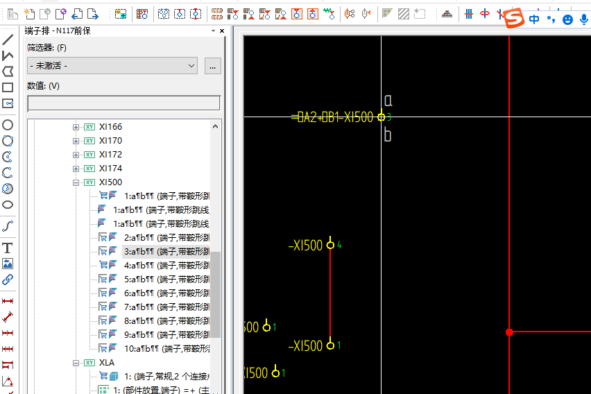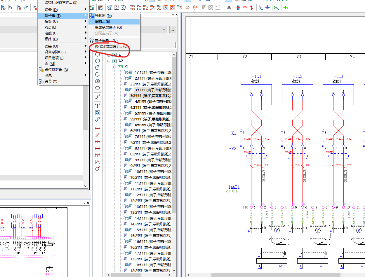 放置完端子后在端子排導航器中選中相應的端子,找優化分散式端子