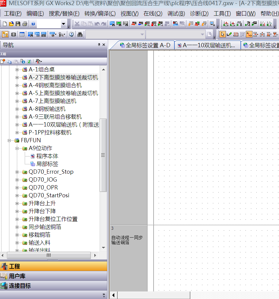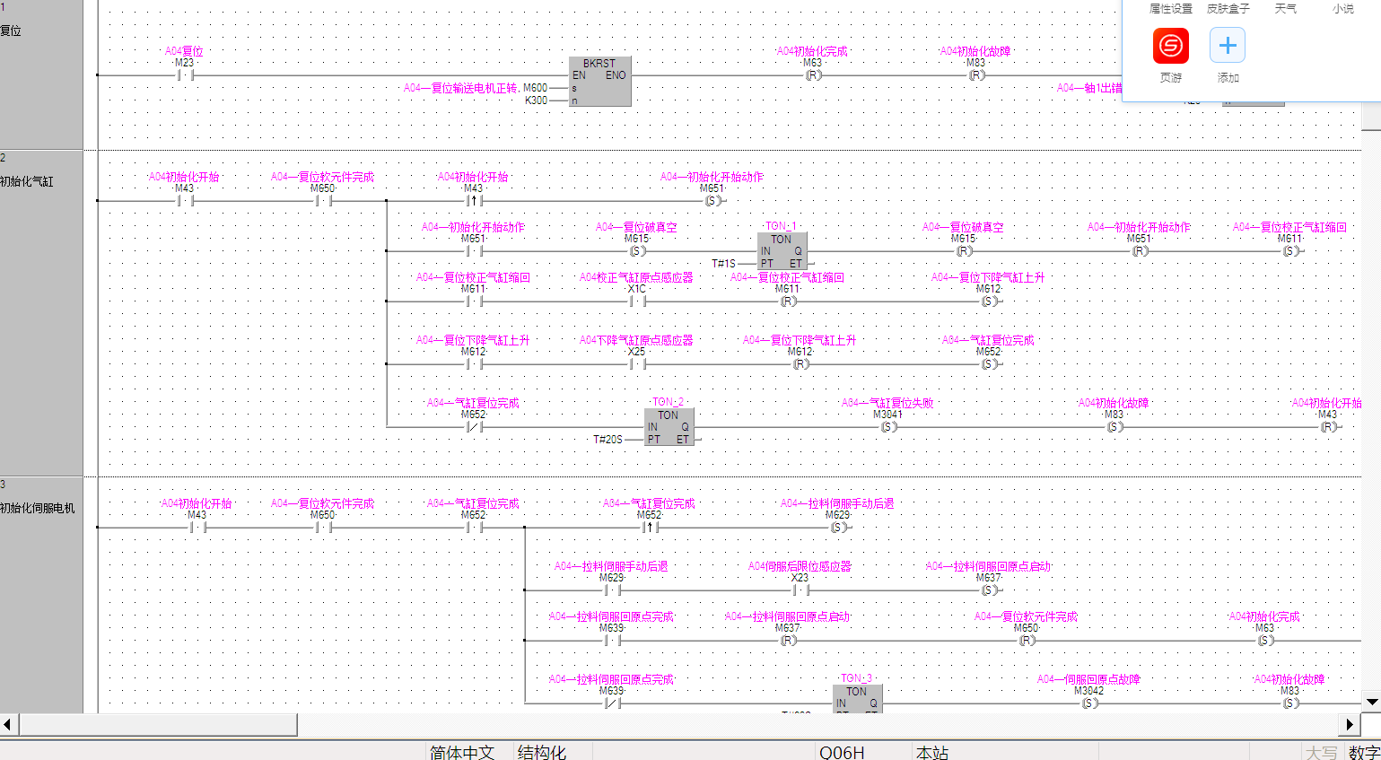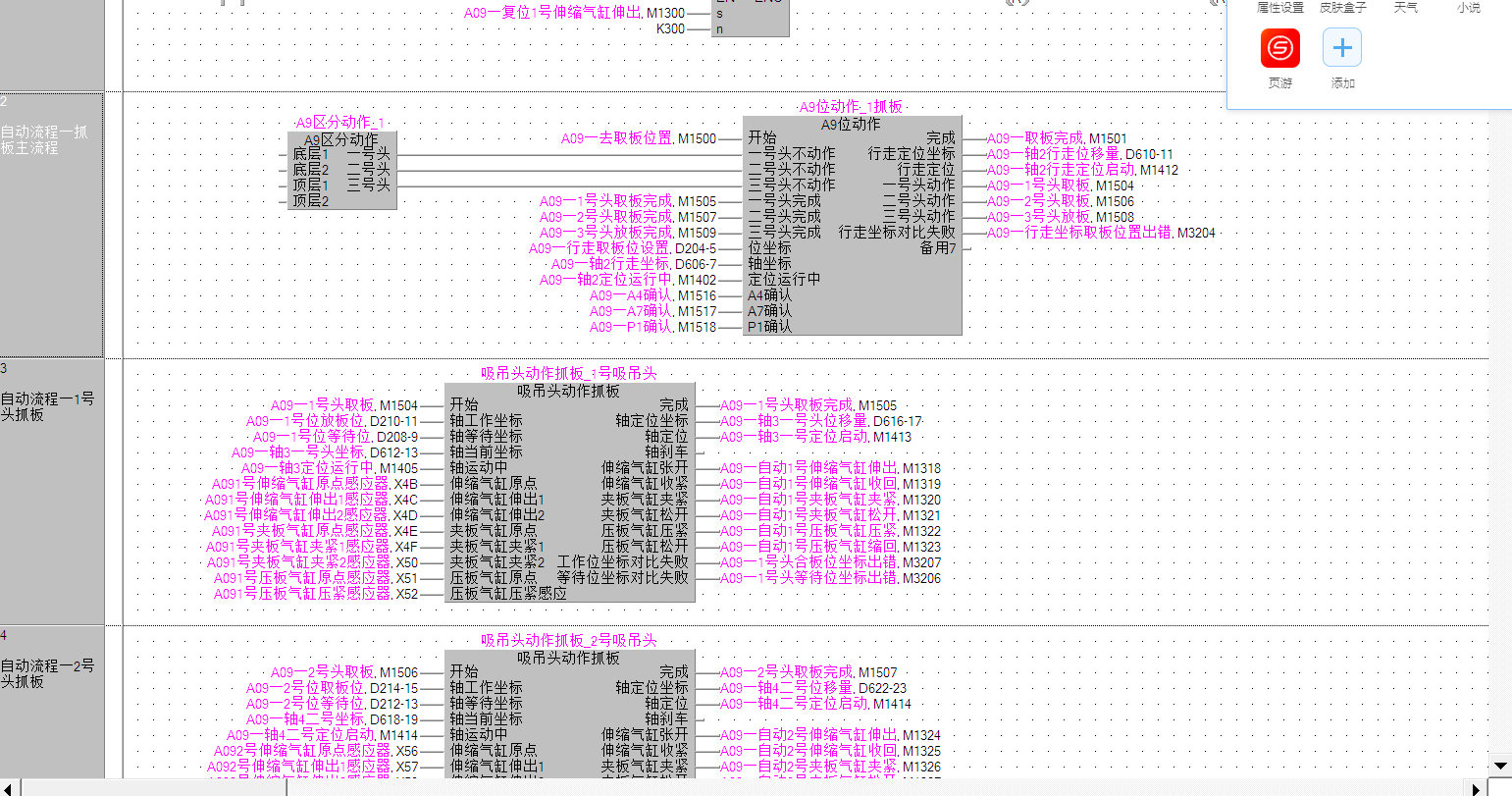 其實畫線這些還好,用自動畫線連接,找塊用指令輸入,主要還是邏輯感比用梯形圖好,之前我已經用梯形圖寫了四五臺,感覺寫交互的時候好亂