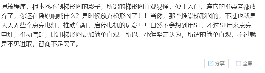 所以梯形圖并不會消失,真正又懂文本又懂梯形圖的人是不會說出這種話來的!