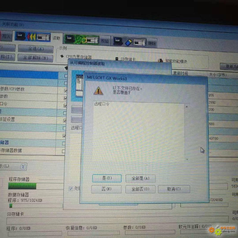 1、你要是開著一個程序去讀取PLC程序可不就是要問你覆不覆蓋掉你開著的那個程序