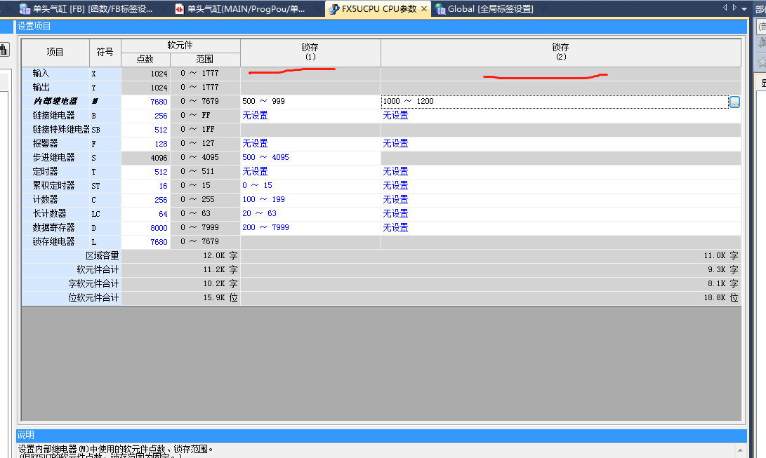 5U的FB分配軟元件地址是不占用M,D等區域的!我問三菱客服,客服解答的。