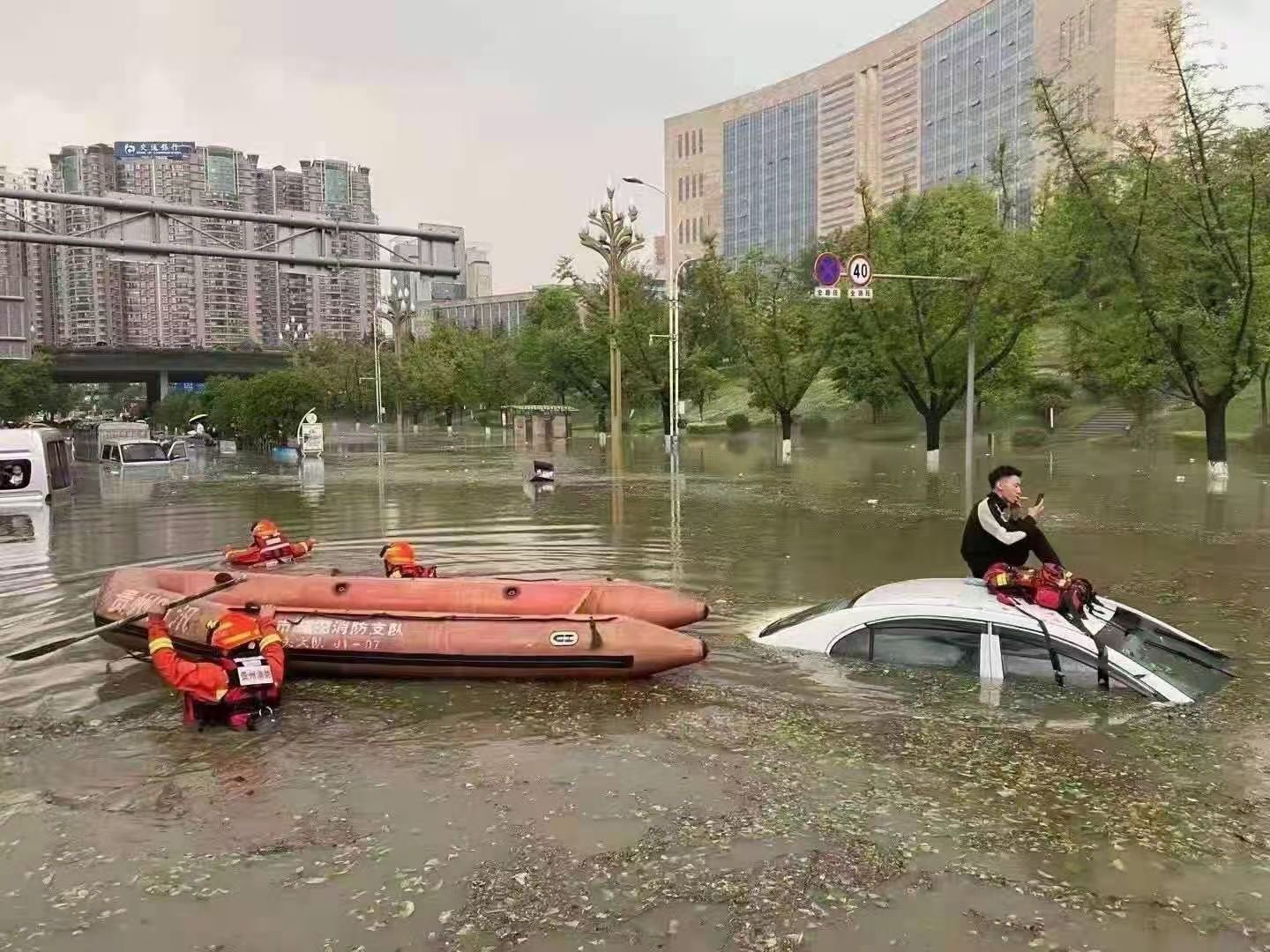水淹到車頂了,不要慌,先抽根香煙,刷下抖音